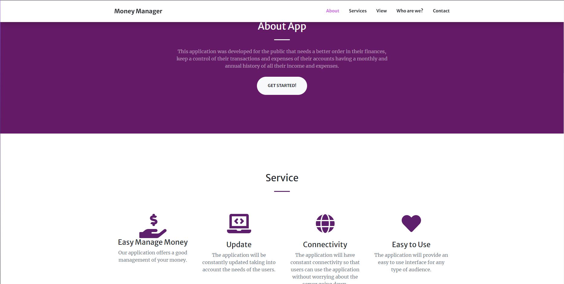 Pagina wed de MoneyManager